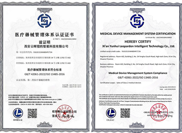 热烈祝贺西安云晖猎豹智能科技有限公司成功通过国家认监委权威认证,荣获ISO 13485医疗器械质量管理体系证书!这一重要成就标志着...